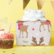 Esfregando papel com uma rena fofa em lenços e luzes de Natal.