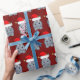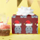 Adorável papel de embrulho de Natal vermelho hipopótamo com um hippo de férias engraçado vestindo um chapéu bonito de Papai Noel.