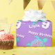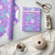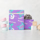 Papel de envolvimento do aniversário no roxo brilhante com um design lunático da tartaruga de mar da natação. Personalize este papel do aniversário da arte da tartaruga com nome e idade da sua criança. Lê atualmente o feliz aniversario Layla 9 hoje. Ideal para criaturas novas da tartaruga ou do mar ou fãs dos animais selvagens. O design e o coração bonito descascam a tartaruga pintada na aguarela por Sarah Trett.