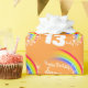 Papel de envolvimento do aniversário em um arco-íris colorido com estrelas e design alaranjado do céu. Personalize este papel do aniversário das meninas com seus próprios nome e idade 10 19. Lê atualmente o verão 13 do feliz aniversario hoje. Aperfeiçoe envolvendo presente de aniversário dos adolescentes especiais um 13o. Projetado excepcionalmente por Sarah Trett.