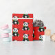 Papel de papel de embrulho mostrado em uma cor vermelha do fundo com um impressão bonito do urso de panda.
