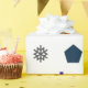 Um belo presente branco enfeitado com formas geométricas vibrantes em roxo, laranja e preto, perfeito para adicionar uma reviravolta moderna aos presentes de Natal. Ideal para Natal, aniversários ou qualquer ocasião especial.