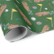 O padrão do equipamento de golfe neste papel de embrulho faz dele o presente perfeito para um golfista. Para aniversários, Dias de os pais, e outras ocasiões especiais, o golfista em sua vida apreciará esse padrão de bolas de golfe, clubes de golfe, bolsas de golfe, camisetas e bandeiras. O fundo é verde.