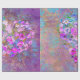 Forma do coração romântico, arranjo floral, azul e roxo com ouro, cobertura antiga de escrita manual sobre um abstrato, turquesa, roxo e lavagem de tinta dourada.