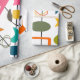 Este papel de embrulho tem um design moderno século médio de linhas pretas com diferentes formas sobre elas em cores MCM. Se você gosta do design, mas prefere cores diferentes, me mande mensagem.