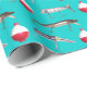 Fotografias de três lures de pesca de safra e de uma bobina de pesca vermelha e branca, enrolada sobre papel de embrulho.