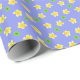 Um rolo de Giftwrap bonito, com um padrão de primatas amarelos e bolinhas verdes em um fundo Violet Blue: parte da coleção Posh & Painterly 'Primroses'.