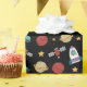 Envolva presentes no estilo cósmico com este papel colorido de embrulho de espaço externo! Apresentando foguetes, planetas e estrelas, ele adiciona um toque galáctico lúdico que faz cada presente brilhar para a grande aventura de aniversário do seu pequeno astronauta.
