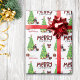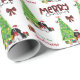 O padrão repetido neste belo papel de embrulho de Natal é uma imagem de um adorável participando preto e branco Cocker Spaniel vestindo um chapéu de Papai Noel e um arco vermelho. O cachorro se senta entre pacotes de presentes envoltos ao lado de uma árvore de Natal decorada. Um pássaro toucinho está pousando na árvore atrás dele. O texto de xadrez de búfalos vermelho e preto estilizado diz MERRY CHRISTMAS", e sua própria assinatura está em dois campos para você personalizar.