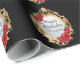 Este papel de embrulho de presente personalizado apresenta um tema de "Snow White Fairy Tale". Uma imagem de um espelho mágico dourado apresenta uma amostra de saudação de Feliz Aniversário e nome sobre um fundo preto. Você pode personalizar a mensagem para incluir seu próprio nome e texto personalizados. O espelho é acentuado com rosas vermelhas e uma maçã perto do fundo. É perfeito para um aniversário, chá de panela, ou qualquer outra celebração de conto de fadas.