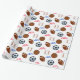 Um papel de envolvimento do divertimento com um tema dos esportes, características basebol, futebol, basquetebol e futebol com texto de All Star no fundo branco.