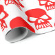 Um papel de embrulho de caveira vermelha sinistro para festas de aniversário temáticas de Halloween, chás de bebê temáticos de terror ou presentes de casamento de Halloween.