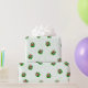 Este rolo de papel embrulhado é branco com pontos verdes e esqueletos divertidos dentro vibrantes, formas vermelhas e verdes segurando ornamentos nos olhos vestindo chapéus de Papai Noel para seus crepmas ou presentes de Natal.
