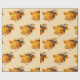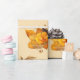 Belo arranjo de flores amarelas com folhas marrons em fundo amarelo-claro
