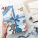 Uma família juntos esquiando em um declive. Este design parece realmente eficaz nestes papéis de enrolamento