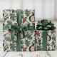 Esta madeira festiva que envolve papel apresenta ilustrações desenhadas à mão de esquilos, bolotas e cogumelos a tinta preta contra um elegante fundo verde-sábio.