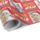 Mensagem de Natal divertida é a estação para embrulhar o papel de presente em vermelho, branco, azul, verde e amarelo. Personalize com duas das suas próprias fotos. Desenhada por Sarah Trett.