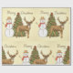 Uma cena de natal alegre de estilo vintage com uma árvore, um boneco de neve e uma rena. Este design parece realmente eficaz nestes papéis de enrolamento