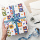 Estilo Geométrico Azul Laranja Verde no Papel de Embalagem de Natal