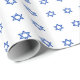 Papel de enrolamento com um padrão azul de estrela de David (Magen David) sobre fundo branco. Personalizável. Perfeito para feriados judeus e ocasiões incluindo Chanucá (Chanukah), Bar Mitzvah ou Bat Mitzvah.