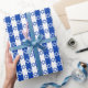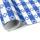 Papel de enrolamento com o padrão branco e azul Star de David (Magen David) sobre um fundo branco e azul de listras. Personalizável. Perfeito para feriados judeus e ocasiões incluindo Chanucá (Chanukah), Bar Mitzvah ou Bat Mitzvah.