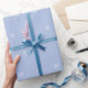 Uma estrela branca de David num papel azul de embrulho. Um design de Cerimônia Hebraica. Bat Mitzvah ou o nome do bebê. O modelo tem um tema azul com o padrão da Estrela de David. Exibir a coleção através do link nesta página.