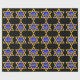 Estrela Amarela de David cheia de azul e menorah.