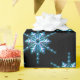 Um plástico de Natal colorido e elegante, apresenta um padrão de flocos de neve azuis-gelo (ou estrelas de Natal, se preferirem) espalhados sobre um fundo preto. Este na moda e muito contemporâneo papel de embrulho de Natal fará uma declaração muito elegante para o seu presente embrulhando estes feriados.