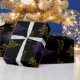 Preto Dourado Roxo Olhe Elegante Árvore de Natal Chic Estrelas Sazonais "Feliz Natal" Tipografia Glossy Gift Wrappaper