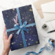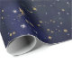 Papel De Presente Estrelas Celestiais Azul e Dourado Aquarela Capric