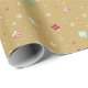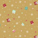 Papel de embrulho de Natal ouro com estrelas, flocos de neve e presentes. Arte original de Marketa Stengl.