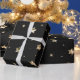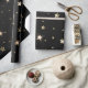 Papel De Presente Estrelas de Natal preto e Dourado Faux Metal