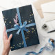 Folhas de moldagem de presente em tons azuis escuros com estrelas douradas (sem efeito de ouro real).