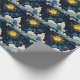 Papel De Presente Estrelas do Sol Celestiais Modernas e Nuvens Azuis