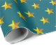 Papel De Presente Estrelas Douradas Azul-Teal Profunda