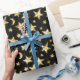 Papel De Presente Estrelas Douradas cintilantes Lua Preta