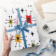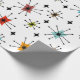 Este papel de embrulho tem uma design moderna do século médio de estrelas em cores e estrelas retrógradas.