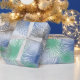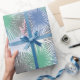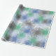 Este papel de embrulho tem uma design moderna do século médio de estímulos em glaurosos (azuis), cinzas, azul claro e verde.