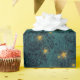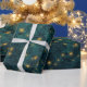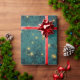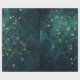 Papel de embrulho verde-temperado úmido embebido com estrelas ouros luminosas.