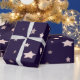 Papel De Presente estrelas rosa douradas elegantes sobre fundo roxo