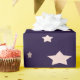 Design de minimalista, moderno e na moda representando estrelas de ouro fracamente rosa num fundo roxo escuro.