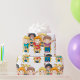 Um grupo de estudantes na aula com as mãos levantadas. Este design parece realmente eficaz nestes papéis de enrolamento