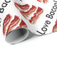 Para o amante do bacon, este papel de embrulho é coberto em tiras de bacon alternando com texto repetitivo que diz, "Eu amo Bacon!". Personalize seu papel-presente com seu próprio texto, se preferir.