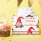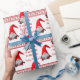 Este adorável gnomo vestido com um chapéu vermelho de Papai Noel, de tamanho excessivo, diz "Eu serei NOME para o Natal" neste belo papel de embrulho de férias. Abaixo do texto está o seu texto personalizado que diz atualmente "Felizes Feriados!" Atrás da imagem do gnomo há uma faixa nórdica de flocos de neve. Tudo é colocado sobre um fundo branco.