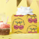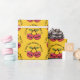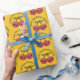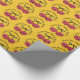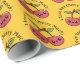 Papel de embrulho amarelo bonito, brilhante e divertido, com duas cerejas vermelhas bonitinhas e felizes com rostos kawaii adoráveis com as palavras "Eu Amo-te Muito Cereja!" em texto preto curvo sobre as cerejas. O design está em um padrão de repetição para trazer diversão e alegria a qualquer presente.