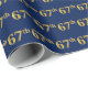 Este design de papel de embrulho apresenta o número ordinal "67º" com uma aparência falsa/imitada em forma de ouro. Ele também apresenta um fundo azul. Pode ser usado no acondicionamento de um presente dado para o sexagésimo sétimo aniversário de alguém, ou talvez para o sexagésimo sétimo aniversário de casamento de um casal casado, ou para qualquer outro evento/ocasião 67. [~Z0000070]