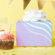 Ondas onduladas contrastantes num tema cor rosa, azul e branco pastel.