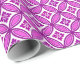 Papel de enrolamento num tradicional Shippo japonês, ou "sete tesouros", com um padrão de entrelaçamento de círculos com uma flor central - flores em ameixa profunda com uma orquídea leve e profunda, fundo roxo profundo e fundo branco com padrão