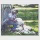 Uma aquarela de dois fazendeiros fazem a cartilha de ovelhas e uma arte raramente vista nesses tempos modernos.