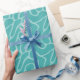 Padrão turquesa abstrato com formas onduladas semelhantes a amebas em várias orientações. O design é contínuo, criando uma textura fluida e harmoniosa.